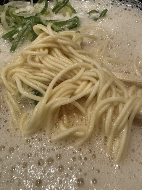 ラーメンは表面が泡立つほど乳化した真っ白スープ!レンゲを入れると“すくう”というより“盛...