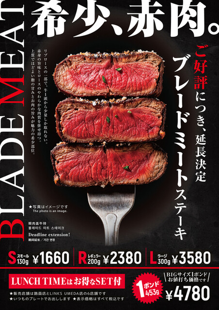 | ジャンル | ステーキ、ハンバーグ、ヨーロッパ料理 |