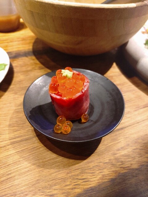 最初に良かったのはランタンとにくら。ランタンは卵とタンを組み合わせた一品で、自身で炙って仕上げるため香りが立ち、芽ネギの食感と見た目も相まって印象に残った。にくらはイクラの弾力と肉の旨味がしっかり感じられ、口に運ぶ瞬間から満...