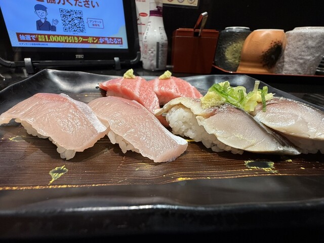 行きつけの寿司屋さんが満席だったので、大阪の法善寺横丁にある回転寿司屋さんに行きました。マグロの種類が多く、マグロ好きには嬉しいかもしれません。味は悪くないです。シャリの握り方が弱いのか握りが崩れやすいのがやや気になりましたが無難なお寿司屋さんでした。コスパも可もなく不可もなくという感じで、無難なお寿司屋さんです。店の中は綺麗です。