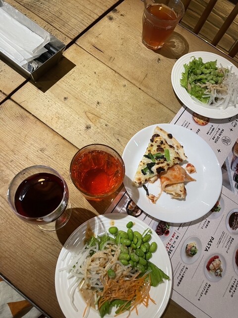 そして、ピザは焼きたての香ばしさが口いっぱいに広がり、一度食べるとやみつきになる美味しさ。薄焼きの生地はサクサクしつつも、もちっとした食感が楽しめる絶妙な仕上がりでした。具材も新鮮で、トマトやバジルの香りがたまりません。一切れずつ取り分けられるスタイルも、みんなでシェアしやすくとても良かったです。
