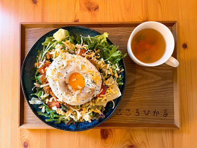 大阪・天王寺区の心光寺の境内にある【cafeこころひかる】。二階建ての一軒家をリノベーションしたカフェで、お坊さんがつくるスープカレーの他素材を活かした健康的なメニューが楽しめます。境内ではヨガやエステ、音楽イベントなど様々な催しが行われるので帰りにぜひお立ち寄りください。更にSDGs等への取り組みにも積極的に参加。点と点をつなげて線にする、そんな社会を目指し出来ることから少しずつ行っています。