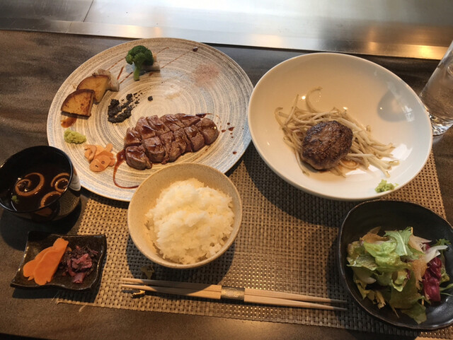 【記念日に♪黒毛和牛アニバーサリーランチ】デザートプレート付!ハンバーグとステーキを両方愉しむ全7品