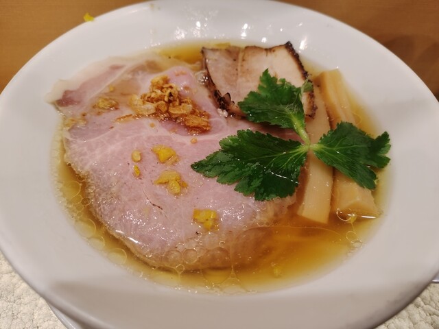スープは澄んでいてあっさり。麺...