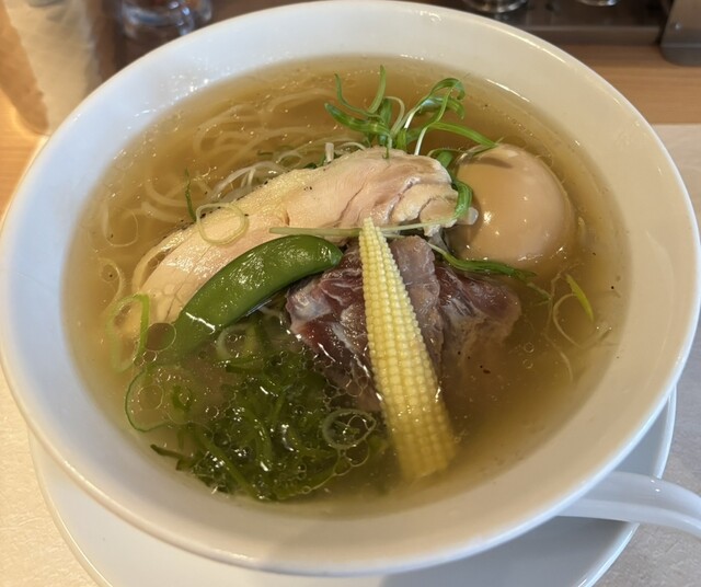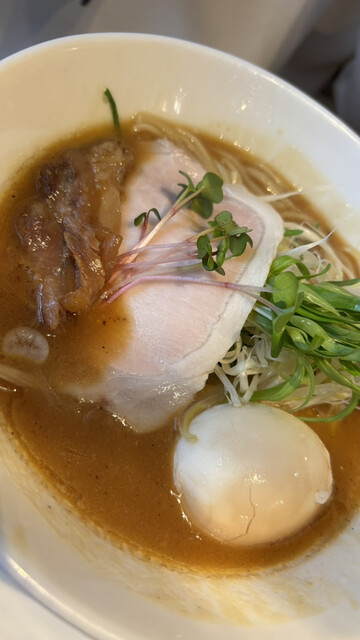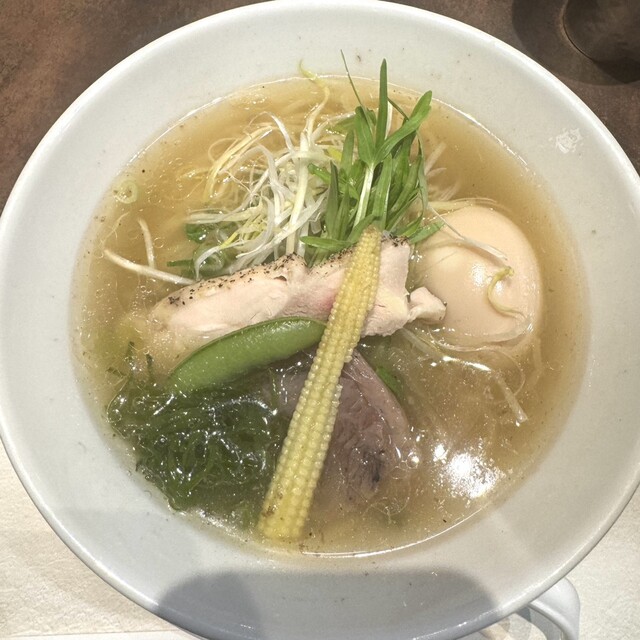 魚介と鶏がらのダブルスープにこだわり、あっさりとした魚介スープに動物系スープを独自の比率でブレンド。繊細な中にも旨味がしっかり出た極上の塩ラーメンです。
