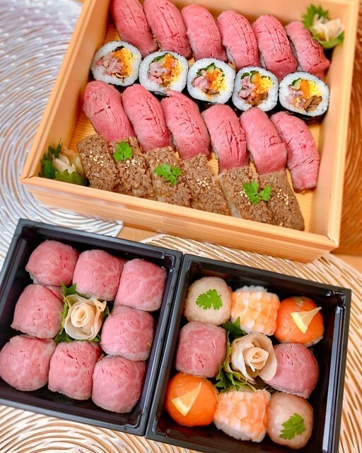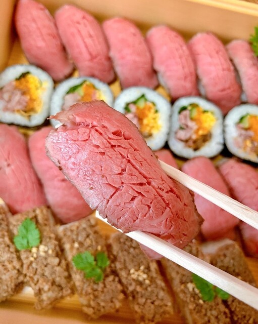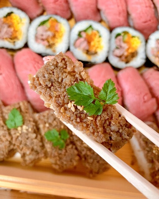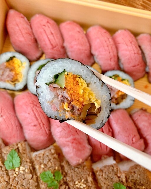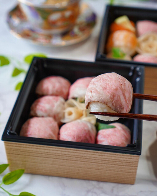 ♪てんてん~ てんまり~ てんてまり~♪ 京都で人気の焼き肉レストランが 松阪牛をつかったお肉のお寿司を販売! 一口サイズの手まり寿司なので パッケージの 「いつ... 詳細を見る