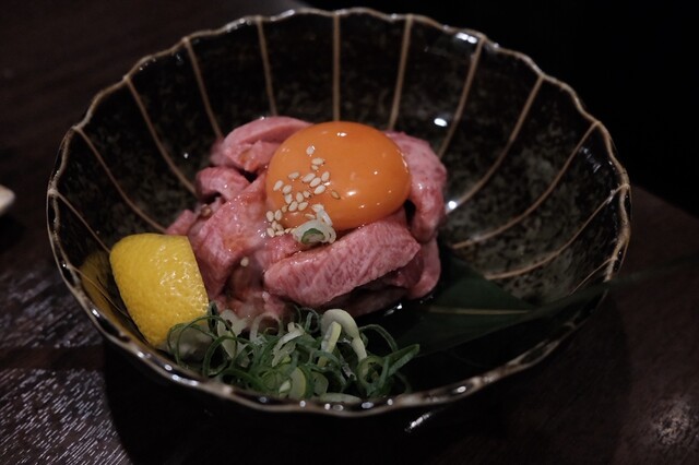 A5ランク黒毛和牛のユッケ、鮮度の良い一品料理をどうぞ。