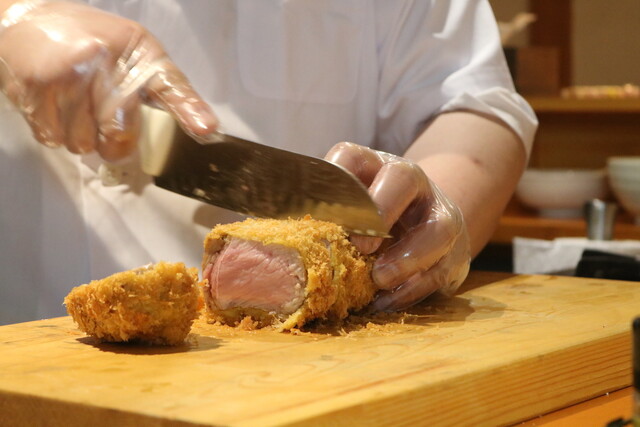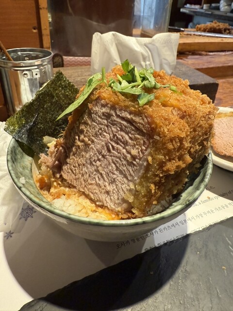 5センチ幅にカットし、じっくり低温調理をしてカラッと揚げる、こだわりのかつ丼。厳選した高級豚肉を使用しています。油はとんかつと相性の良い“ラード”(豚の背脂)にサラダ油を配合することで、サッパリ感とこってり感がミラクルマッチ◎トロトロの卵やパリパリの海苔と共にお召し上がりください。お店は駅から1分とアクセス抜群。お一人様でも入りやすいカウンター席がメインのお店です。ご来店お待ちしております。