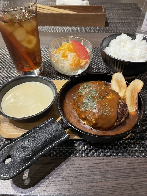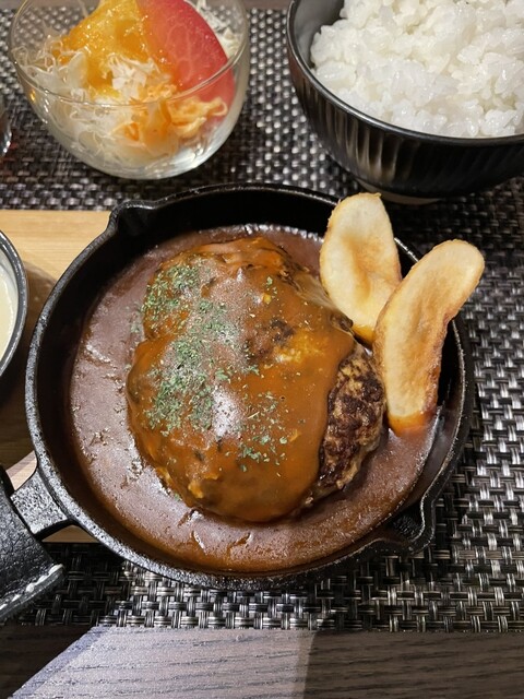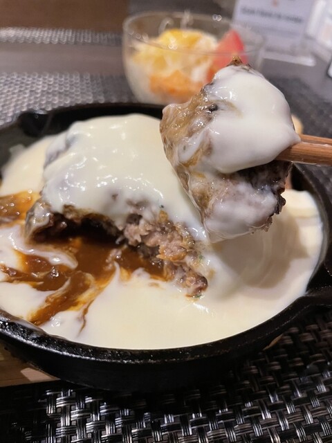 黒毛和牛のハンバーグ【デミグラスソース&濃厚とろける4種のチーズ】(ライス+サラダ付き)¥1,628