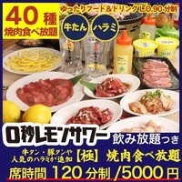 【食べ放題も飲み放題も120分制!】宴会・飲み会におすすめ!店舗限定でときわ亭を満喫できるコースを販売♪ときわ亭名物仙台塩ホルモンはもちろん「中落ちカルビ」や「ときわ亭ハラミ」、人気の「ときわ亭牛たん」まで全部食べ放題!逸品や〆物、デザートもついた人気の食べ飲み放題2時間制です!《飲み放題にはなんと、当店名物『0秒レモンサワー』も!》 ※L.O.30分