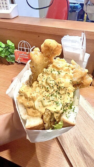 谷町九丁目駅、日本橋駅近くのこんなにでかいサンドイッチは 反則ださんでランチ。 お値段にビビっていたのですが、たまごやチキンといった庶民 向けで普通のメニューもあって安心... 詳細を見る