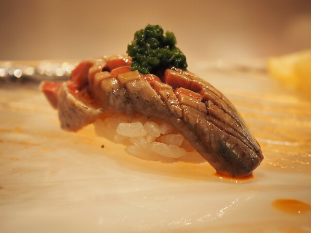 カウンターの寿司屋さんって、職人さんひとりに対してお客さん6〜8人が限度と言われている中、当店は概ね15席程度。それを、職人さんひとりで回してます(その他2名サポート役)。 大阪は寿司どころで、リーズナブルなカウンター寿司屋さんが多いですが、オーダーは2カンが原則。醤油はお客がつけるスタイルで... 詳細を見る