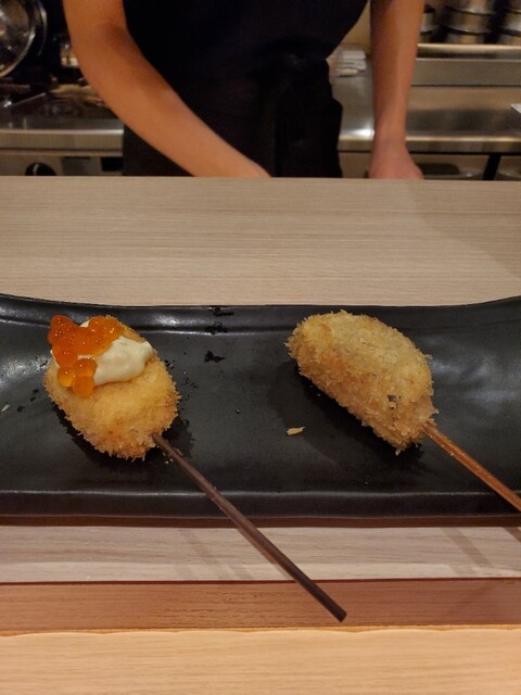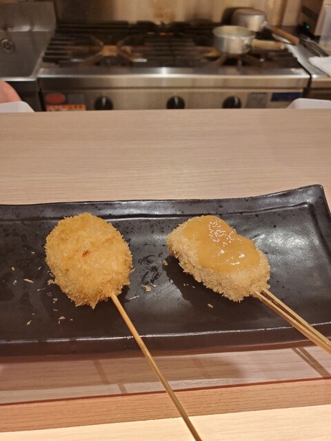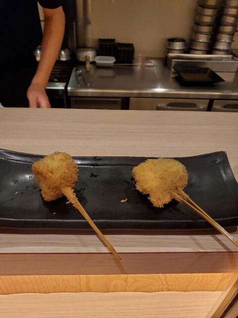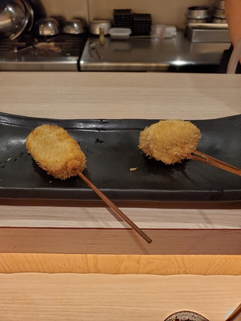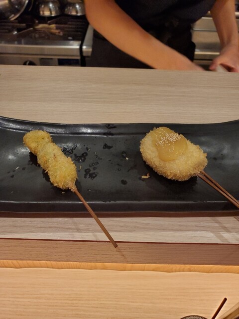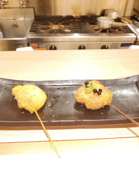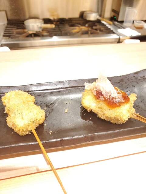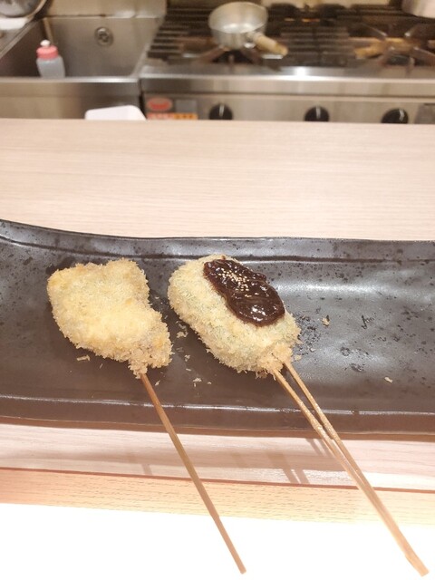 後はゆっくり串カツを楽しみました。お任せなので何が出てくるか楽しみ~