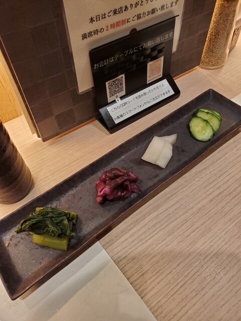 来店してすぐに鯛釜飯を頼み、お漬け物の盛り合わせ