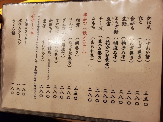 | ドリンク | 日本酒あり、焼酎あり、ワインあり、日本酒にこだわる |
