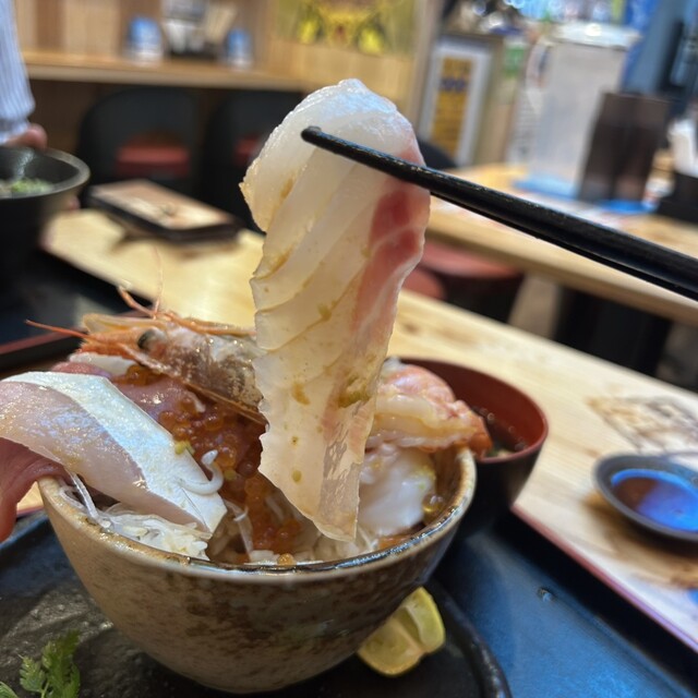特上海鮮丼は、なんせこれでもかーっちゅーくらい大きな色んなお刺身が乗っててたまらんですっ