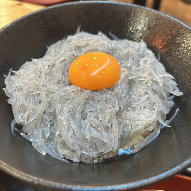 タマゴと一緒にテーブルで置かれてる専用たれをかけて食べる生しらすはほんと美味♬