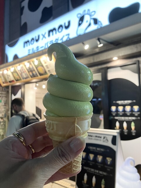 大阪・ミナミのど真ん中、千日前エリアにある「mou×mouミルキーパラダイス 千日前店」に立ち寄りました。名前からしてミルク系スイーツに特化したお店なのは明白で、乳製品好きとしては見逃せない一軒。SNSでも「ミルク好きの聖地」として話題になっていたので、期待値高めで訪問しました。