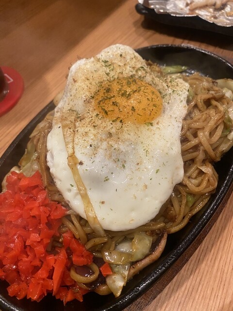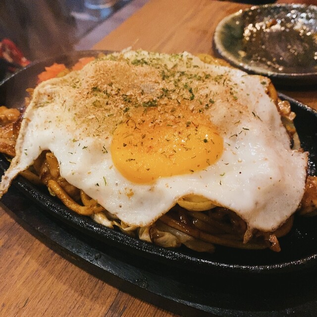 ここの焼きそばは上に目玉焼き乗ってて、美味しいしかない!