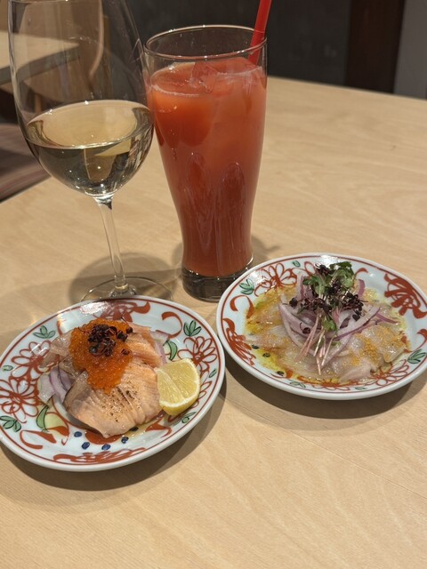 平日17時に友人と待ち合わせてお伺いしました。裏なんばの路地裏にある隠れ家のような素敵なお店。自社の魚屋さんから鮮度抜群の魚介を毎日仕入れているそうで、魚介メニューが豊富! 私はイタリアのマカリオ リモナータ、友人は長野県産ふじりんごのすりおろしストレートジュースで乾杯。クラフトジュースの種類が色々あるので、お酒が飲めない方も楽しめますね。 まず注文したのは、長崎県産 本まぐろ中トロの涙カ... 詳細を見る