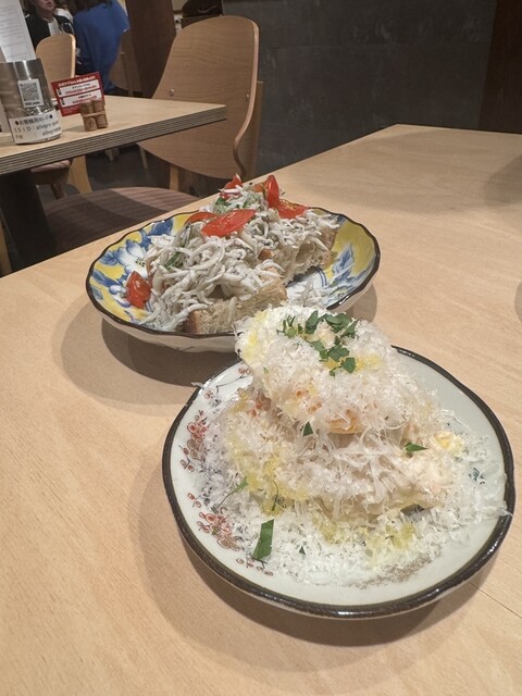熱々ふわふわの鉄板オムレツ「フリッタータ 燻製チーズ」や、シラスがこぼれそうなくらいたっぷりのブルスケッタも安定のおいしさ。