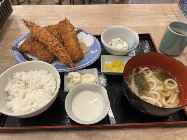 お昼なので、定食もありカキフライ定食を友達と半分しました。