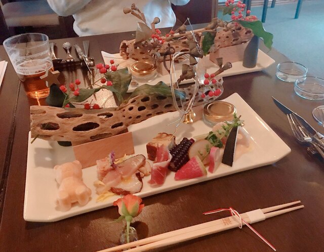 予約をして2人で伺いました。はじめての訪問です。カウンターに案内されます。雰囲気が何とも言えない変わった雰囲気です。私はハイボール、相方はスパークリングワインにします。前菜から八寸... 詳細を見る