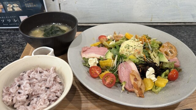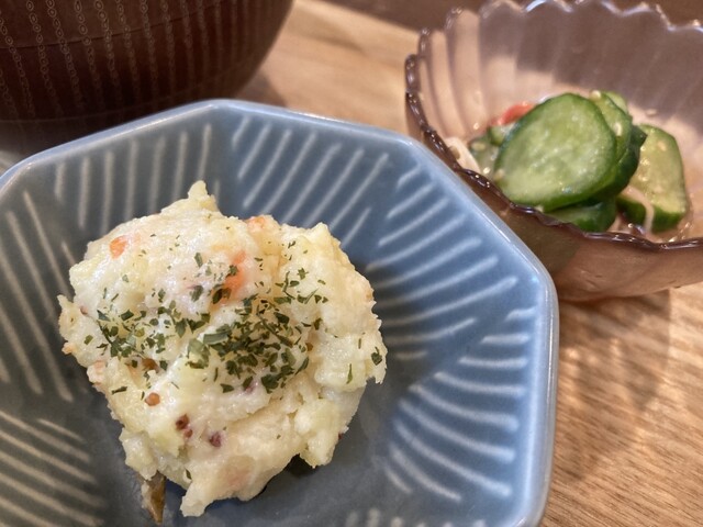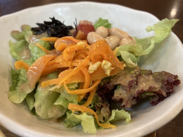 サラダ、小鉢2種、ご飯、味噌汁付です〜