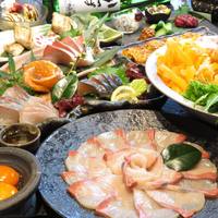 鮮魚のお造り5種、自社ブランド鶏六角大魔王の地鶏の炙り焼きなど鶏料理も入った特別逸品コース!