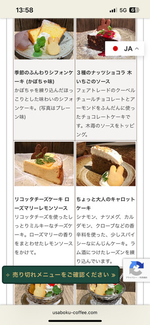 ・体調不良による急な変更もございますので、当日の営業状況は来店当日にWebsiteでご確認ください