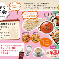 【インドで女子会コース3300円】飲み放題付♪2名様からOK!異国的な店内で本格インド料理が楽しめる6品