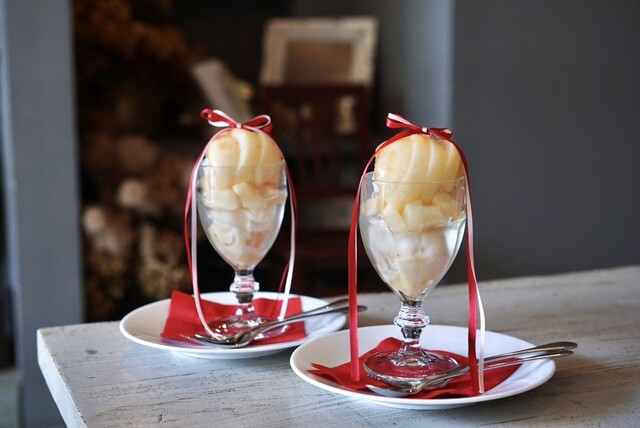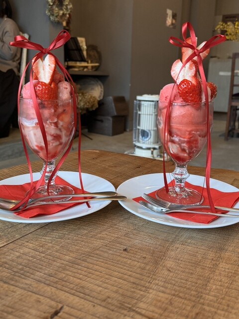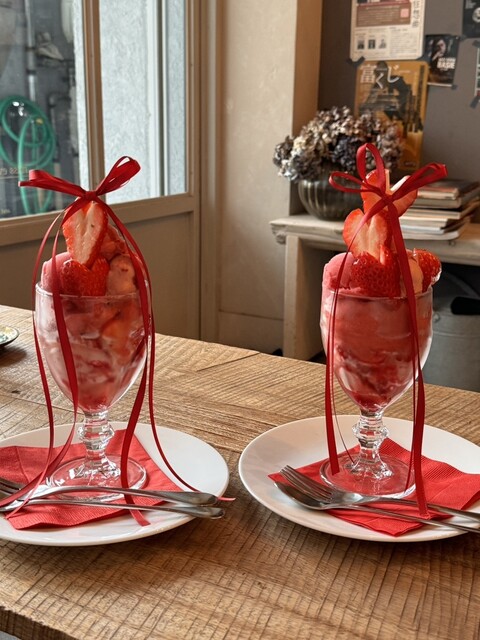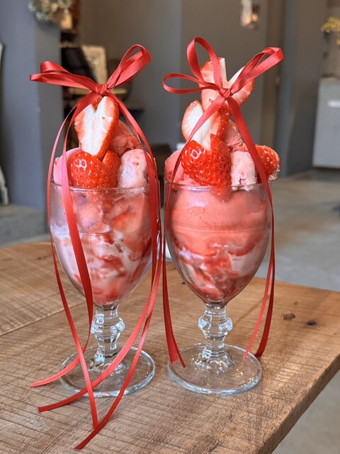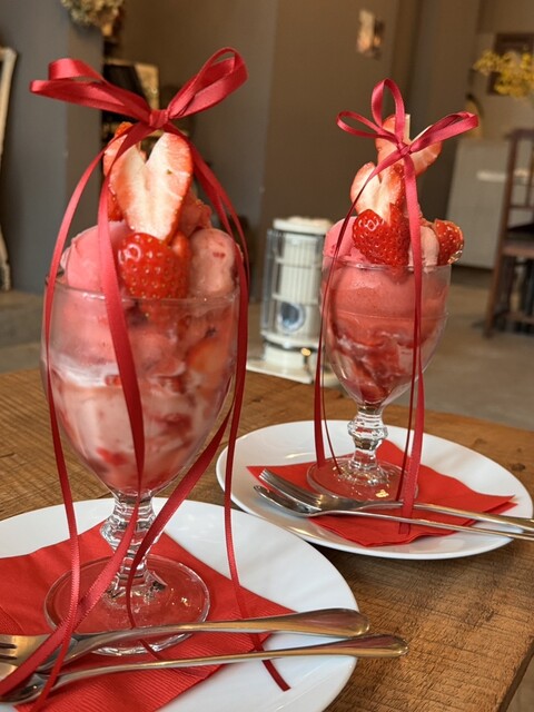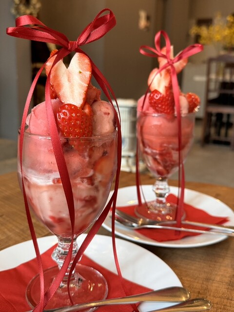 リボンで装飾されたパフェが可愛くて来たかったこちらのカフェ。