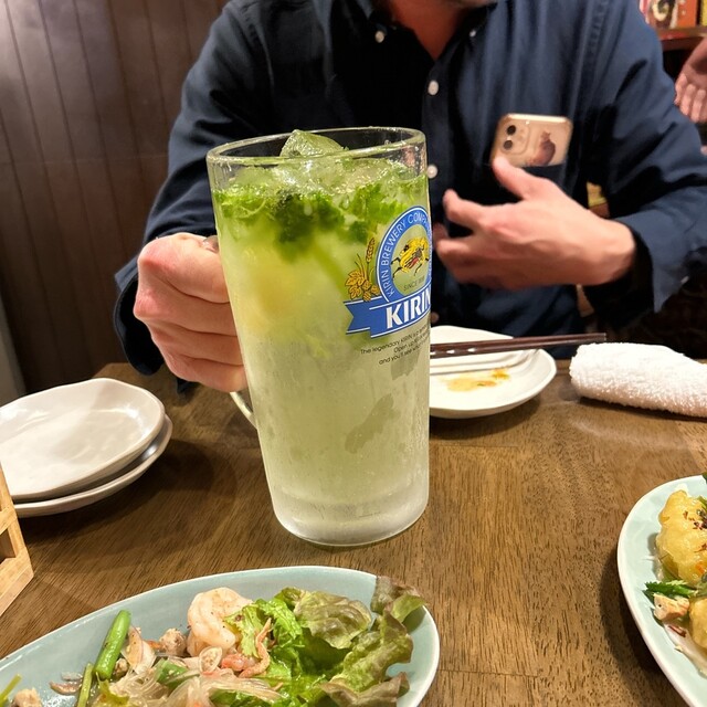 パクチーとカットレモンの入った爽やかな「パクチー酎ハイ」