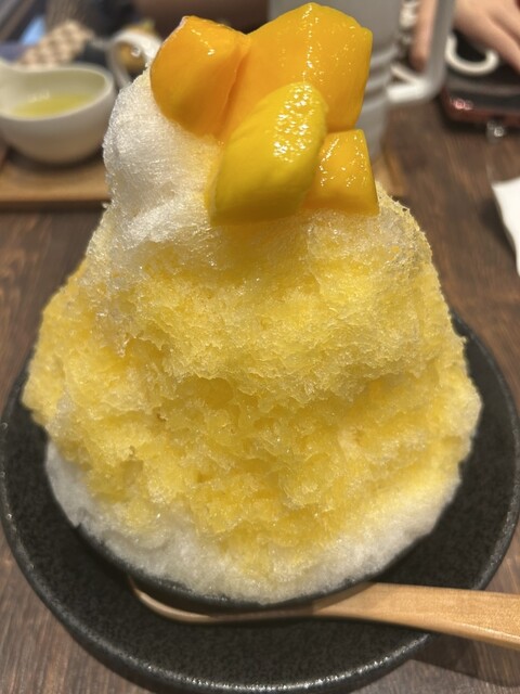 上に大きめのマンゴーが5切れほどのっていて美味しかったです。シロップは甘すぎず、最後まで飽きずに...