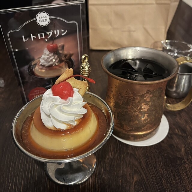 今回は「レトロプリン」と「コーヒー(冷)」を注文。プリンはドリンクとセットで頼むと100円引きになります。