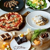 Anniversary Planリニューアル♪誕生日や記念日、お祝い事に♪乾杯スパークリング付き!アニバーサリーにぴったりな花束に見立てたブーケサラダとフルーツ生ハム、ハートピッツァにボロネーゼ、炭火で焼いたメインに当店おすすめのデザート盛り合わせに焼き菓子☆思い出に残る1品で喜ばれる事間違いなし!