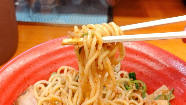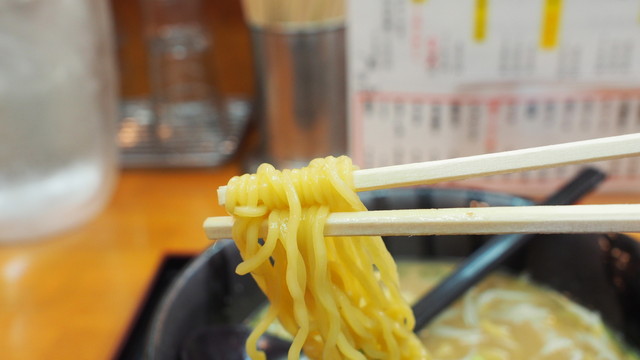 麺はやや細めの縮れ麺。多加水による艶やかな質感で、適度なコシがあり歯切れの良さが印象的。スープとの絡みも良好です。