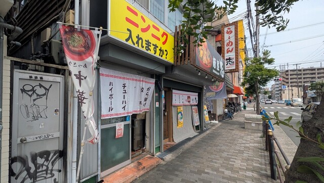 JR阪和線・美章園駅を出て左方向に3分ほど歩いたところにあるラーメン店です。