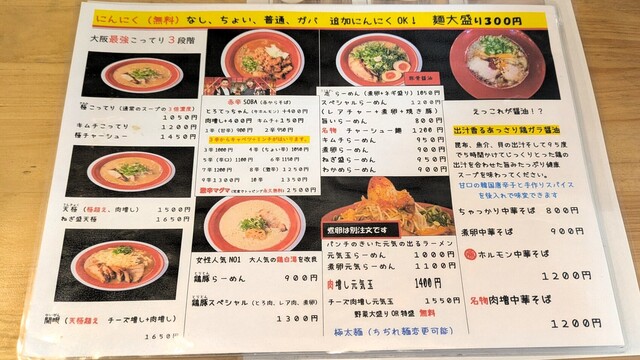 挑戦者求む!!鬼辛マグマ完食で“トッピング永久無料券GET”!!勇気ある方はぜひ挑戦してみて下さい☆当店の自慢はなんと言っても、豚骨・鶏ガラ・国産豚バラ・香味野菜を12時間以上じっくり煮込んだコラーゲンたっぷりの濃厚スープ。特に「極こってりらーめん」は、背脂チャッチャでこってりにするのではなく、とにかく骨を炊き込んで通常の濃厚スープ3杯分になるまでじっくり煮込み最強スープに仕上げています!他にも、あっさりなのに旨味凝縮の「旨いらーめん」や「みそとんこつ」、「汁なし油そば」、「濃厚つけ麺」、「台湾まぜそば」など、どのらーめんも食材からとことんこだわった一度食べたらヤミツキになる至高の一杯。 |
