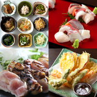 旬野菜のお惣菜や魚介、肉の一品料理、そして各種コースを取り揃えています。