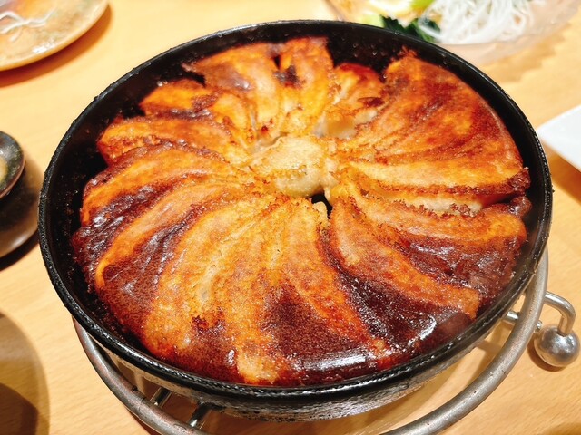 昭和37年の創業から継ぎ足す手羽先の煮こごりを餡に練り込み、丁寧に手包みして熱々の鉄なべで焼き上げた自慢の逸品です。