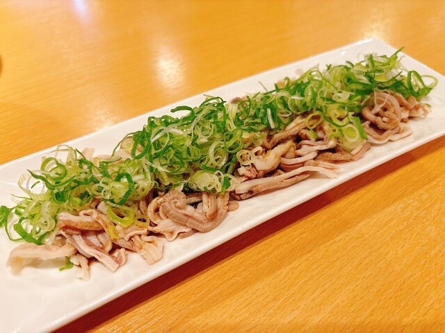 餃子はもちろん名物!パリパリで香ばしくて、特製のちょっと酸味のあるタレと相性抜群。小皿料理もいろいろあって、つまみにもピッタリ。