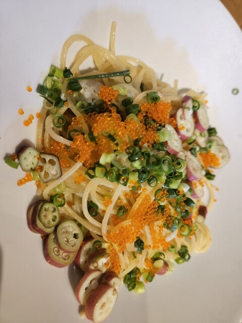 ・山口 鱧とキュウリ 山椒のオイルソースパスタ