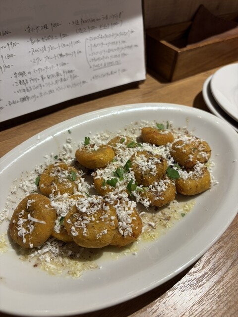 ・イチジクのフリット ゴルゴンゾーラと生ハムのクロッカンテと白トフルチミツ