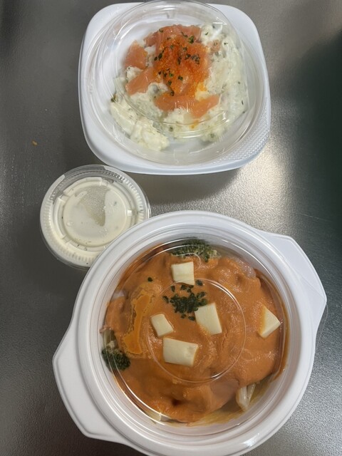まさかお惣菜で赤白を楽しめるとは! ( ゚Д゚) なんと並ぶことなくオーダー! (お店はほぼほぼ並んでます) ポルチーニ大根! フォアグラ茶碗蒸し♫ 簡単にレンチン... 詳細を見る