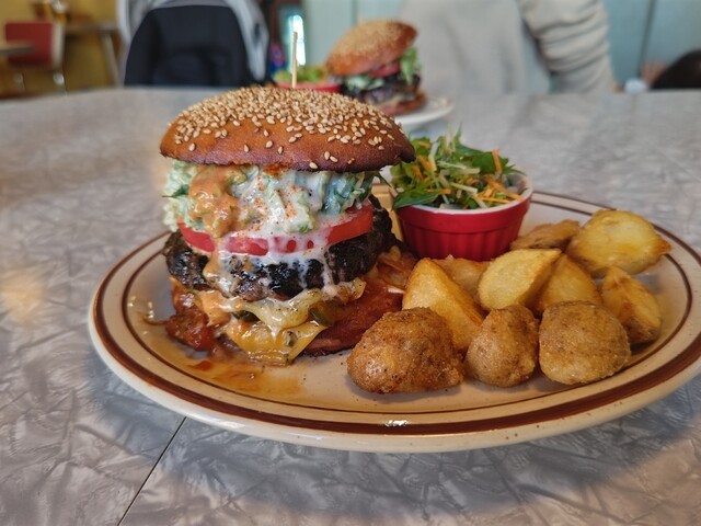 グルメバーガーが好きです ※不満はいつも、値段だけ ここのは、どうかなぁ カフェ風の店内 その構成は テーブルのみ、16席(5卓) さほど広くはないので(失礼)... 詳細を見る