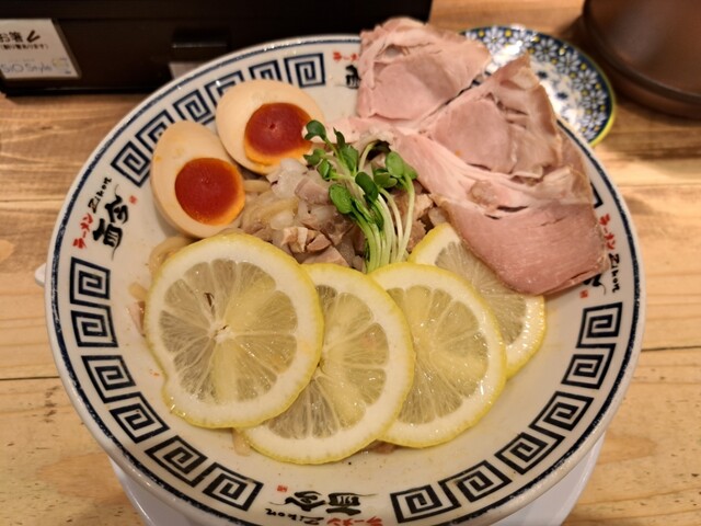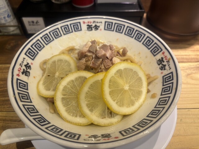 具材はチャーシュー、レモン、玉ねぎ、かいわれ(かいわれ抜きにしてます)