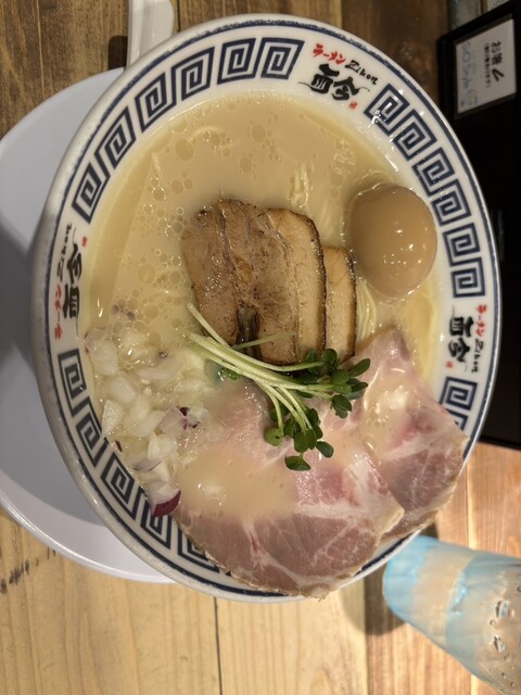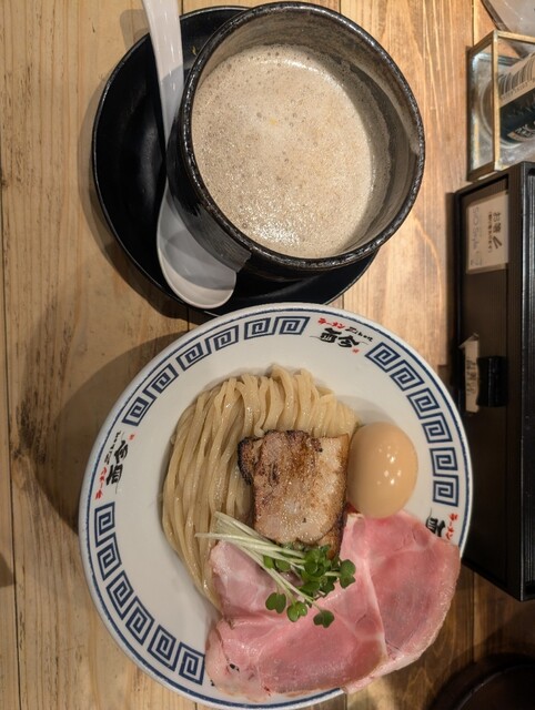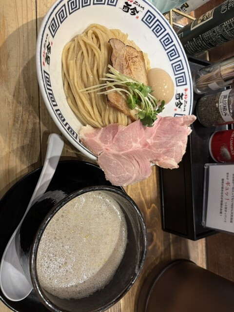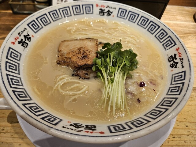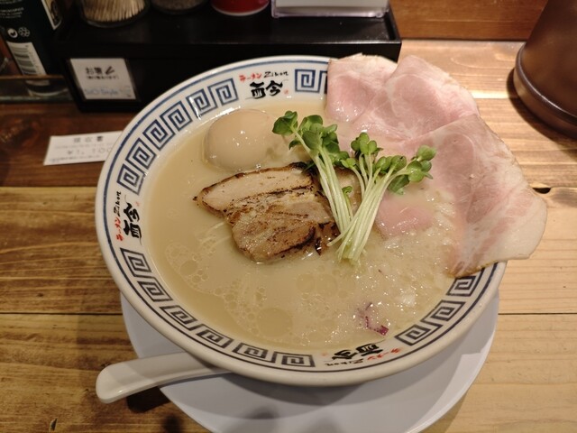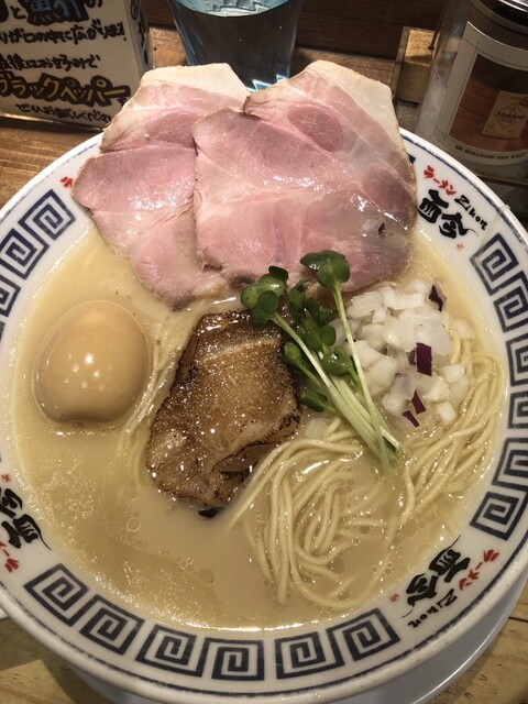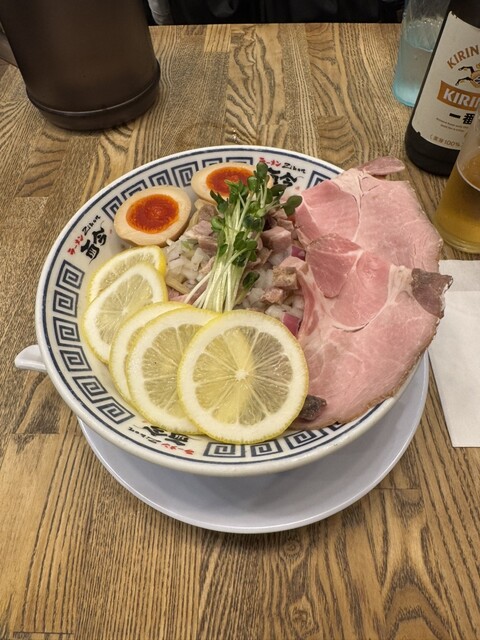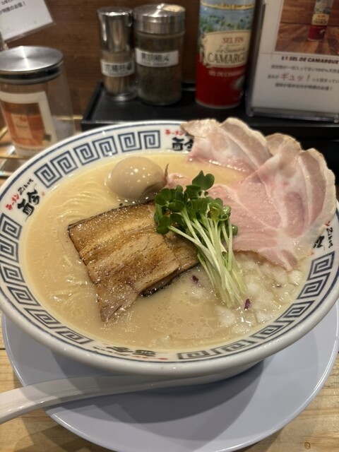 モチモチの麺が美味しい。まず何もつけずにいただくと小麦の香りが溢れます。スープの味加減はちょうど良くて、レアチャーシューなどの具材もそれぞれ個性を出していて、最後まで飽きずにいただきました。卓上の塩の...
