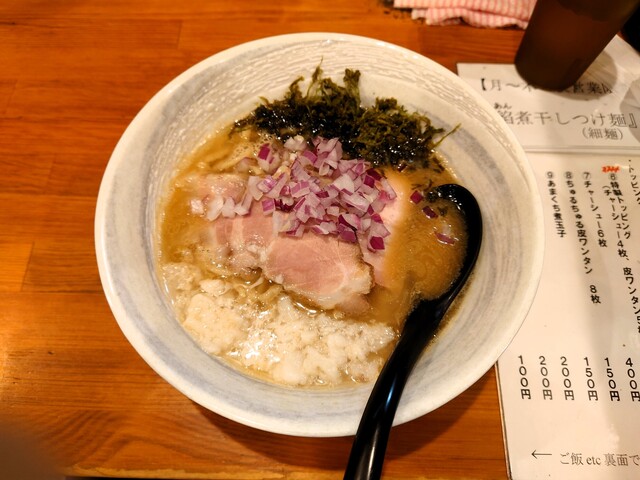 煮干しの香りが効いたスープ、タレの?甘み加減が好みでした