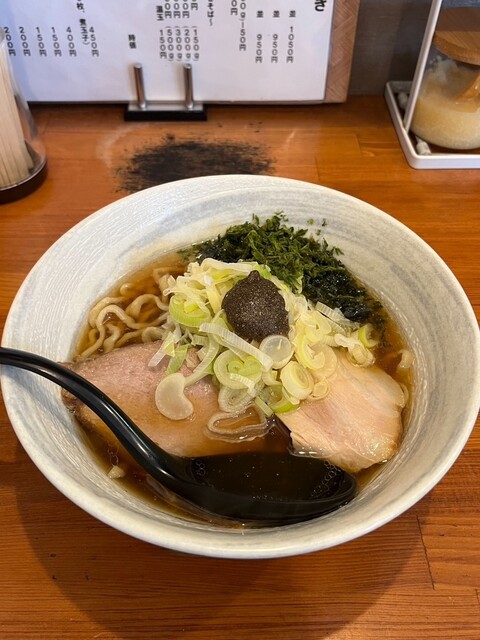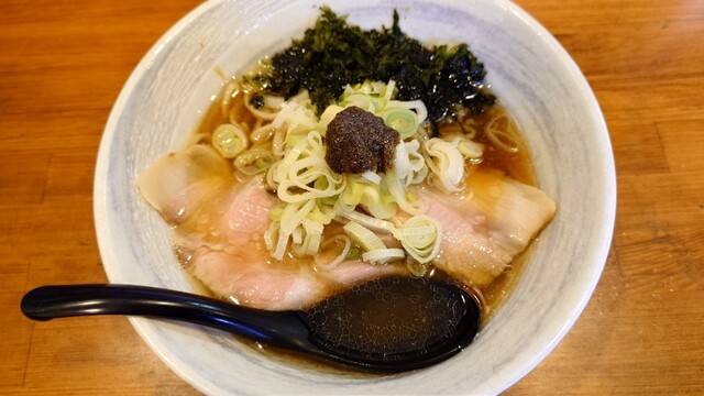オススメメニューと表記された醤油ラーメンに、背脂をトッピングしました